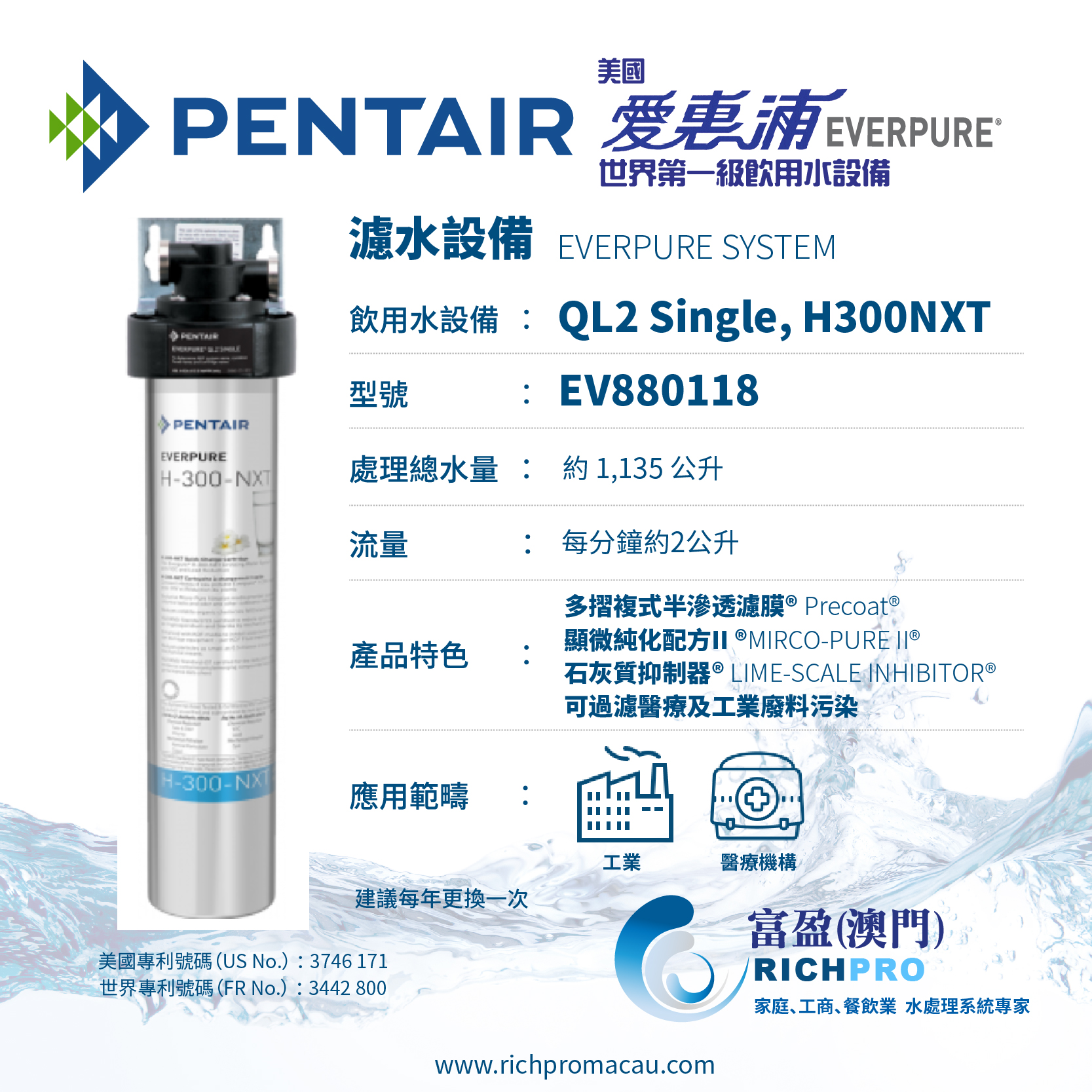 | 主要功能 | 1. 6倍加強除鉛功能 2. 符合最新及最高NSF401標準 3. 可過濾醫療及工業廢料污染 4. 改良活性炭過濾技術 5. 符合NSF/ANSI 42及53世界第一級飲用水 |